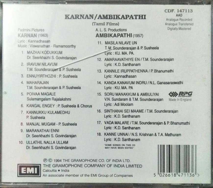 Karnan and Ambikapathi Tamil Film Audio CD viswanathan Ramamoorthy