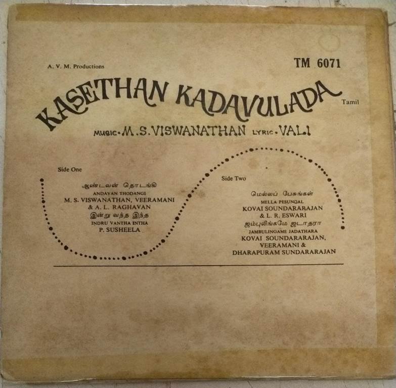 Kasethan Kadavulada Tamil Film EP Vinyl Record by M S Viswanathan
