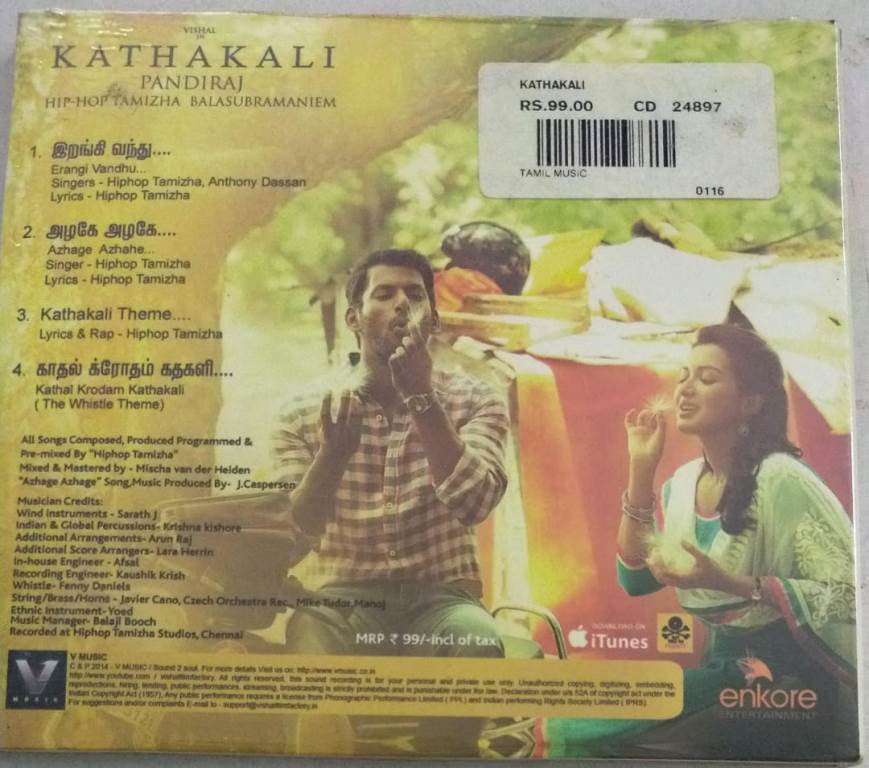 Kathakali Tamil Film Audio CD by Hip Hop Tamizha