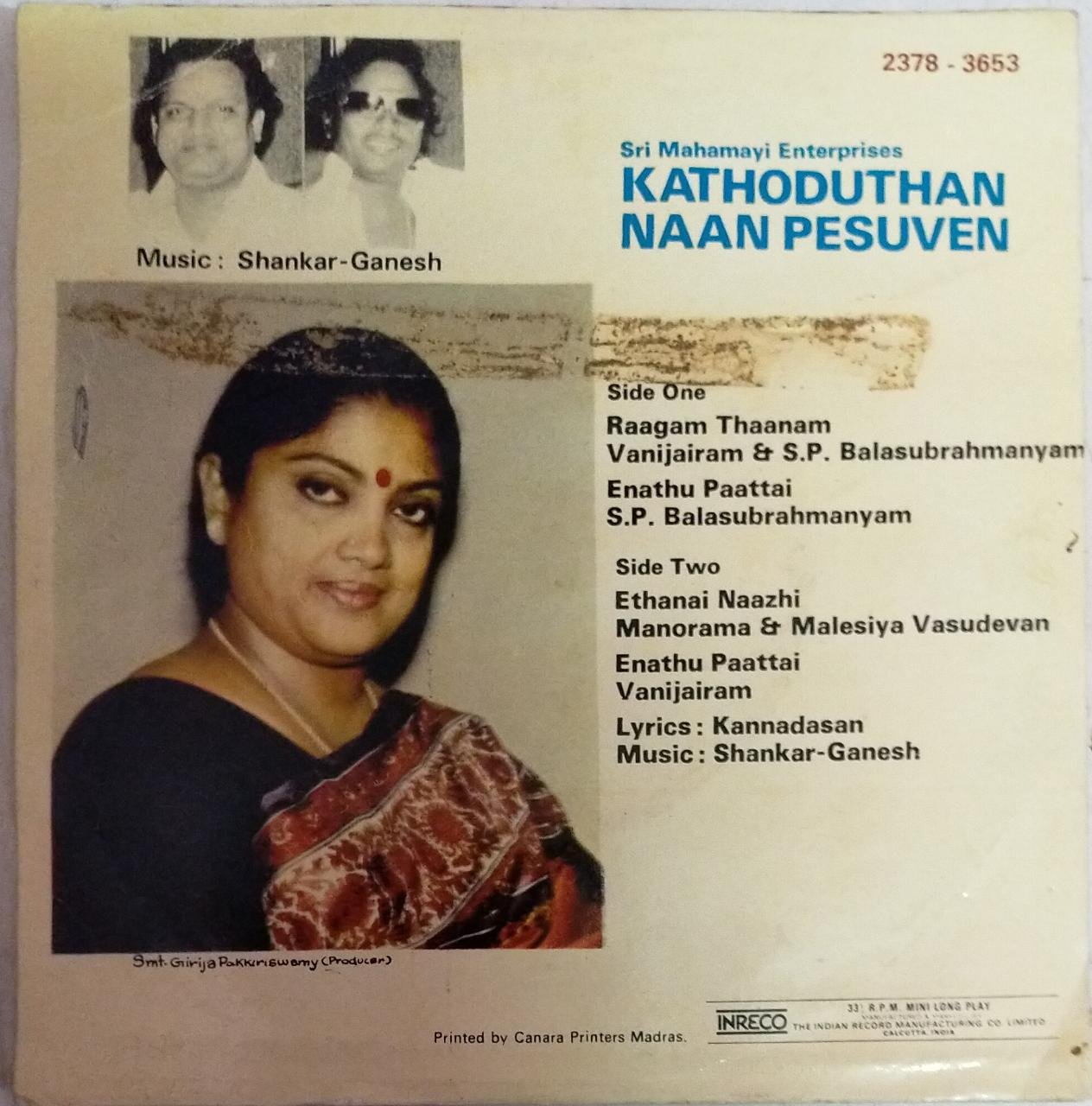 Kathoduthan Naan Pesuven Tamil Film EP Vinyl Record by Shankar Ganesh