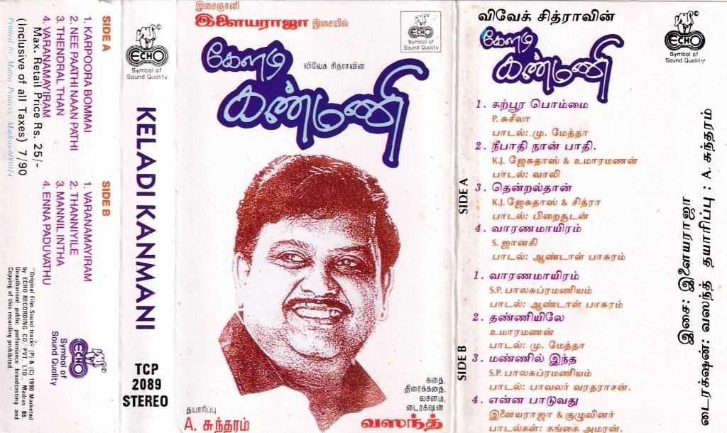 Keladi Kanmani Tamil Film Hits Audio Cassette by Ilayaraaja