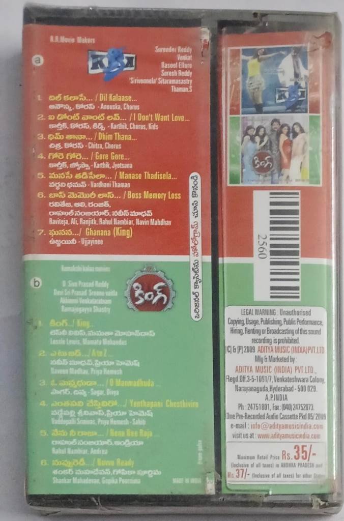 Kich- King Telugu Film songs Audio Cassette (sealed pack)