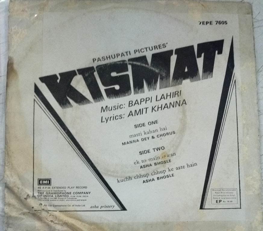 Kismat Hindi Film EP Vinyl Record by Bappi Lahiri