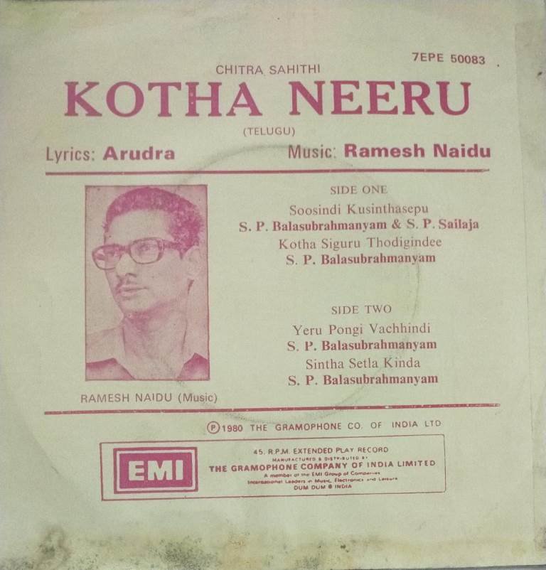 Kotha Neeru Telugu Film EP Vinyl Record by Ramesh Naidu