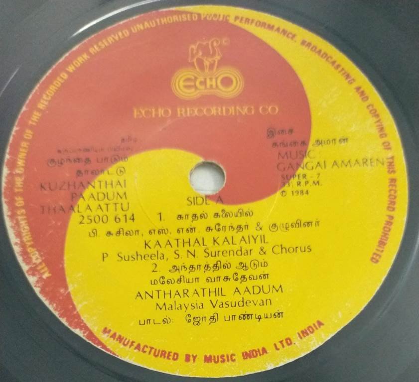 Kulandai Paadum Thaalattu Tamil Film EP Vinyl Record