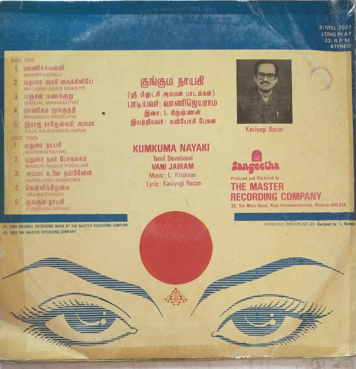 Kumkuma Naayagi Devotional Tamil songs LP Vinyl Record by Vani Jayaram