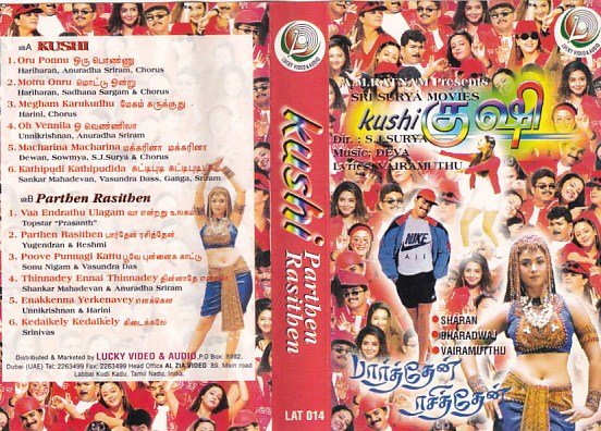 Kushi- Parthen Rasithen Tamil Film Audio cassette by Deva
