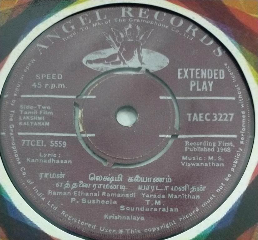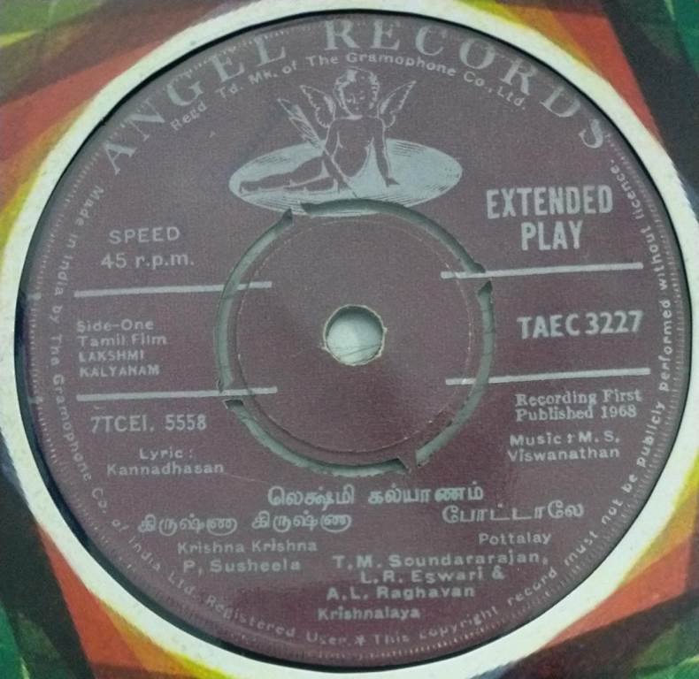 Lakhmi Kalyanam Tamil Film EP Vinyl Record by M S Viswanathan