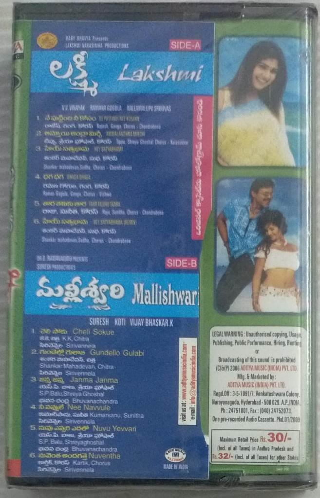 Lakshmi- Malleshwari Telugu Film Audio Cassette ( sealed pack)