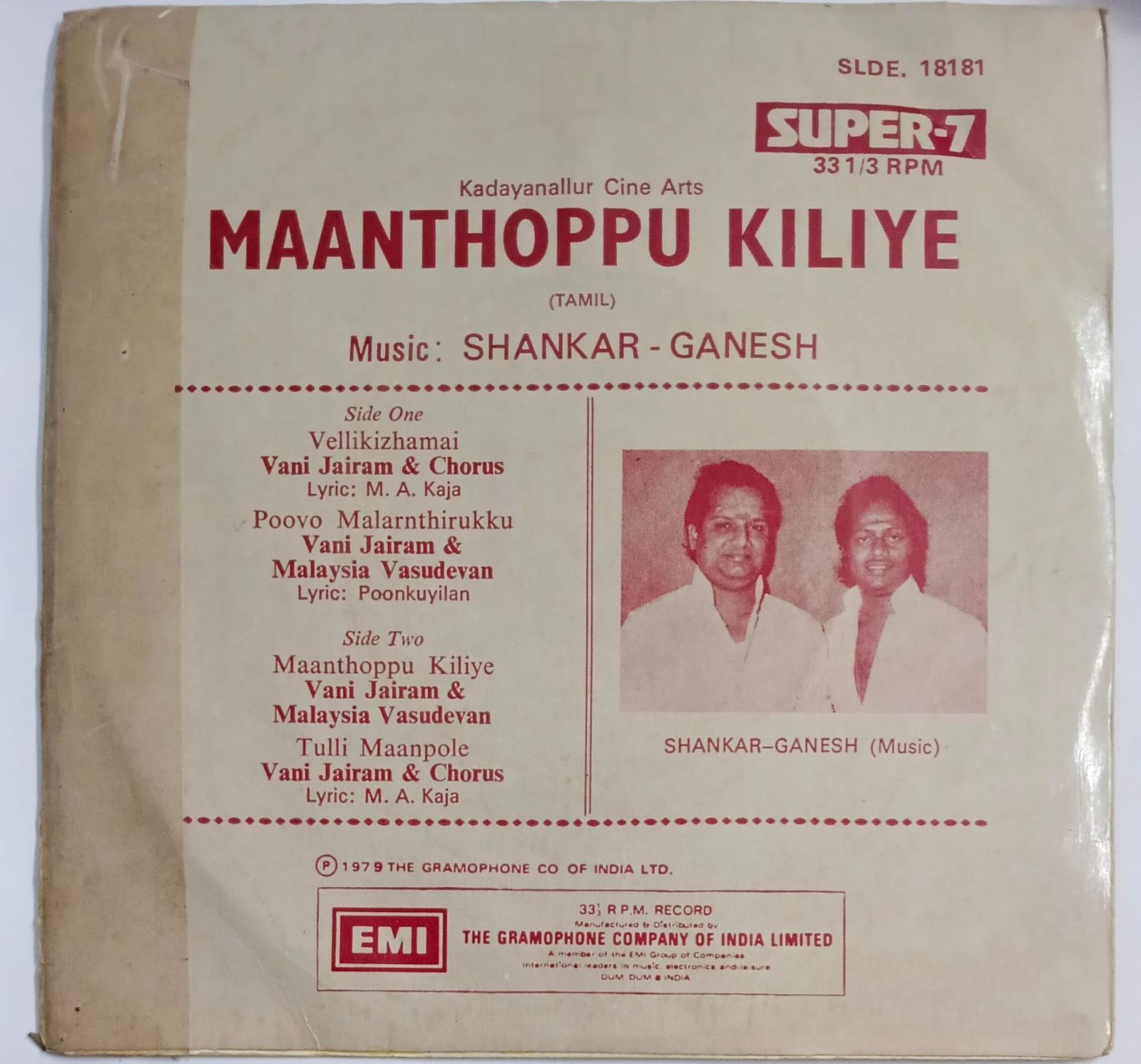 Maanthoppu Kiliye Tamil Film EP Vinyl Record by Shankar Ganesh