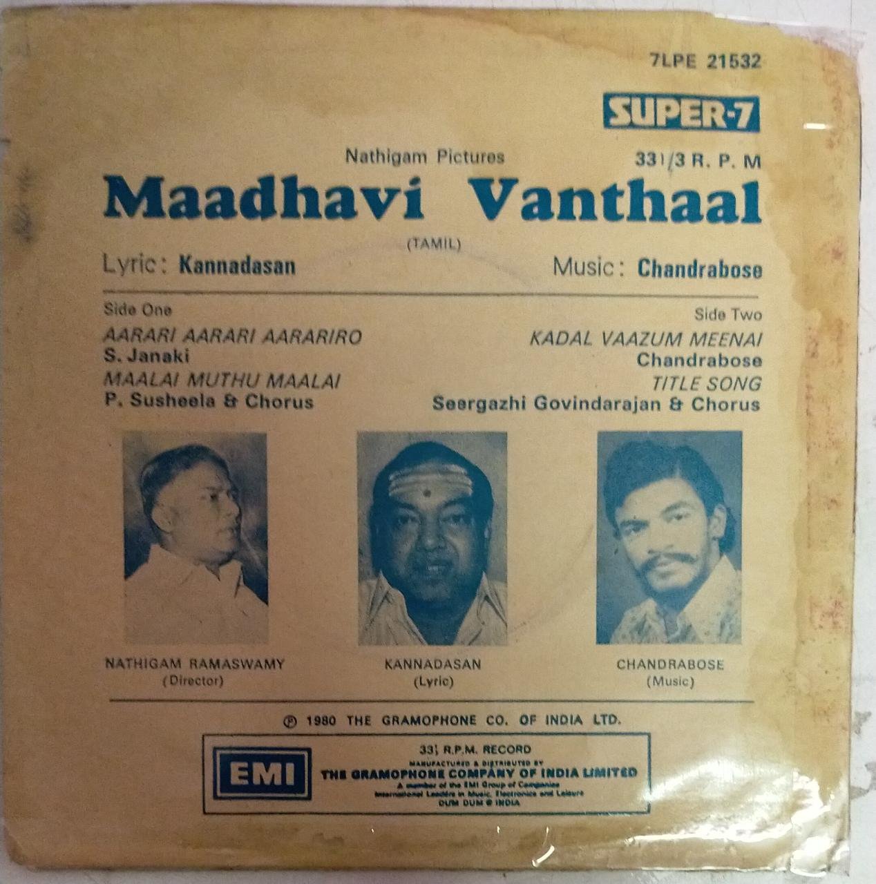 Madhavi Vanthaal Tamil Film Super 7 EP Vinyl Record by Chandrabose