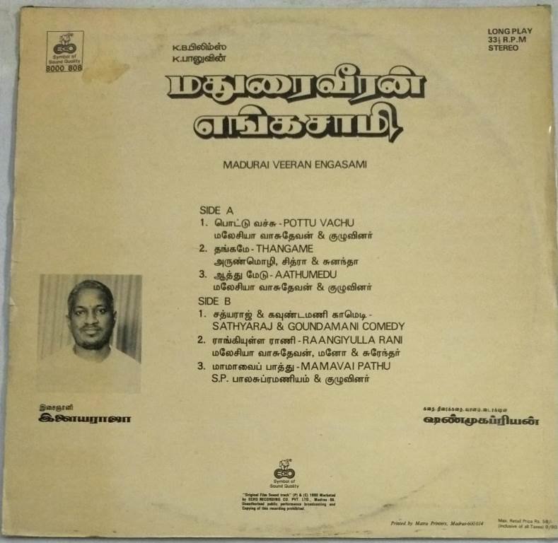 Madurai Veeran Engasami Tamil Film LP Vinyl Record by Ilayaraaja