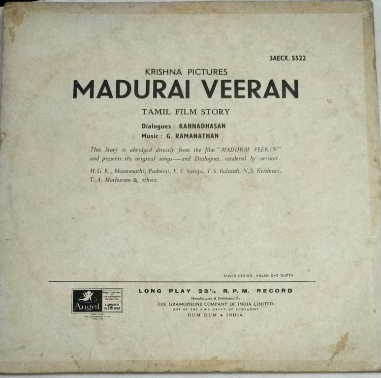 Madurai Veeran Tamil Film Story and Dialogues LP Vinyl Record