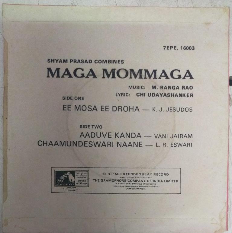 Maga Mommaga Kannada Film EP Vinyl Record by M Ranga Rao