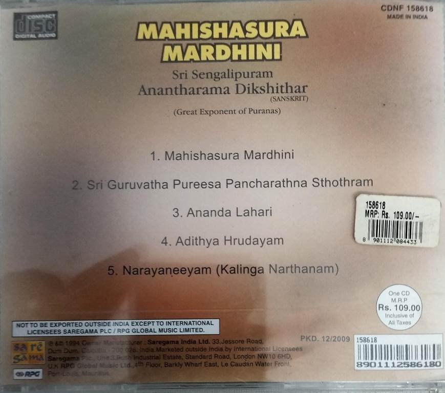 Manishasura Mardhini Devotional Audio CD
