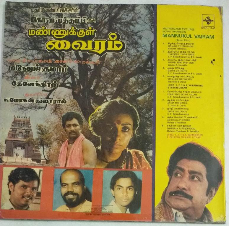 Mannukkul Vairam Tamil Film LP Vinyl Record by Devendran