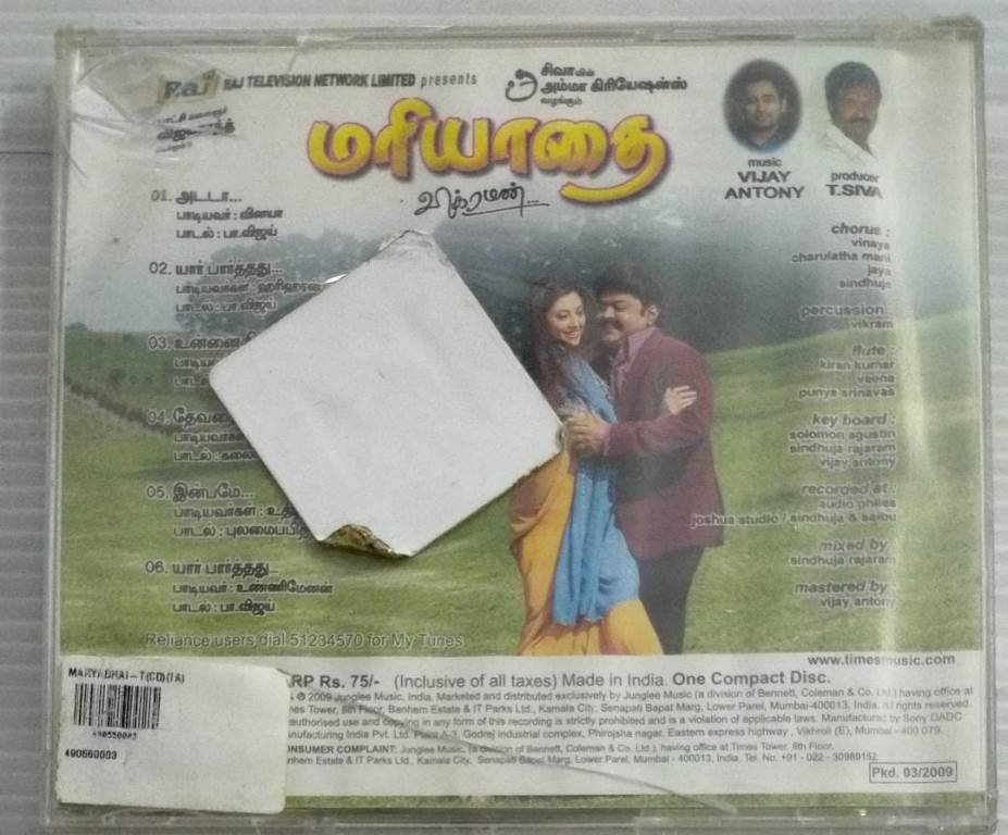 Mariyathai Tamil Film Audio CD by Vijay Antony (sealed pack)