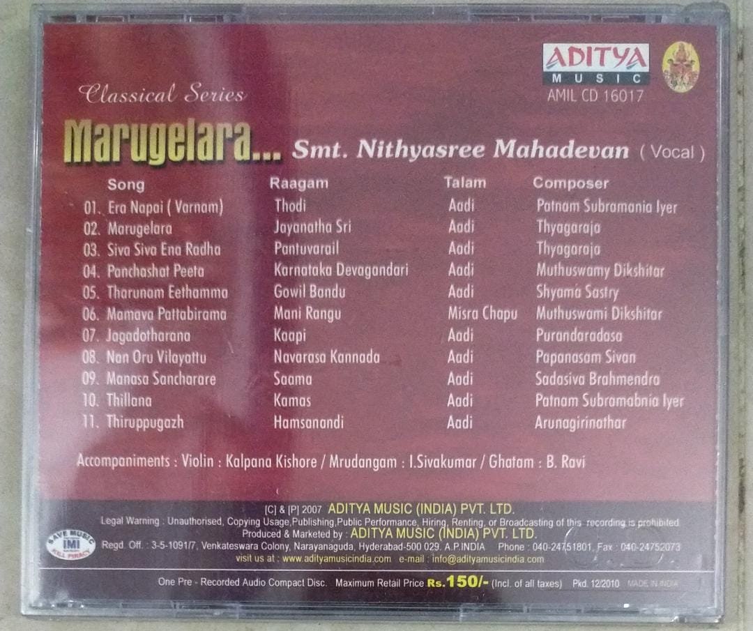 Marugelara Classical Vocal Audio CD by Nithyasree Mahadevan