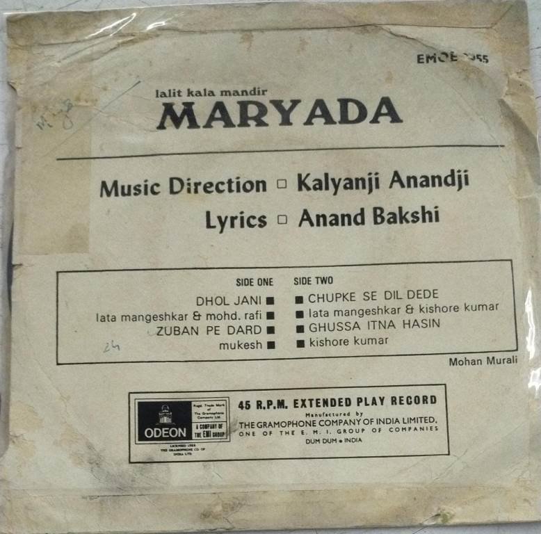 Maryada Hindi Film EP Vinyl Record by Kalyanji Anandji