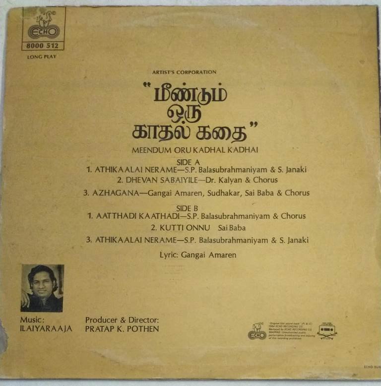 Meendum Oru Kadhal Kadhai Tamil Film LP Vinyl Record by Ilayaraaja