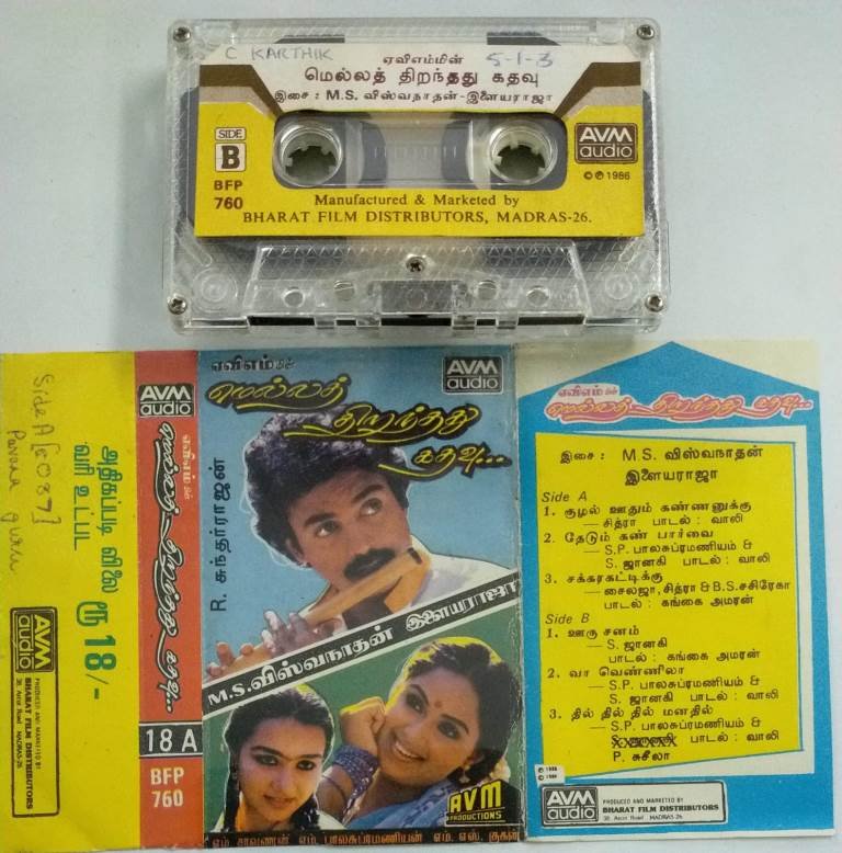 Mella thiranthathu Kathavu Tamil Film Audio Cassette by Ilayaraaja