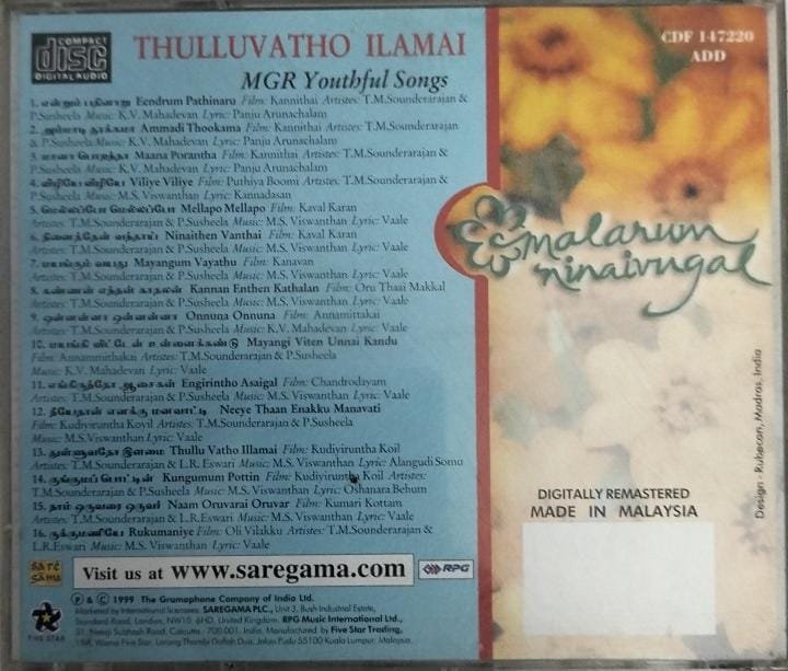 MGR Youthful songs Tamil film hits Audio CD (Imported)