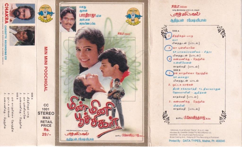 Minmini Poochigal Tamil film Audio Cassette