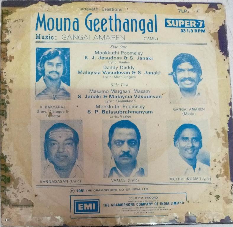 Mouna Geethangal Tamil Film EP Vinyl Record by Gangai Ameran