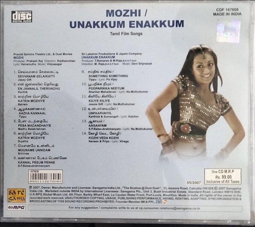 Be the first to review “Mozhi – Unakkum Enakkum – Tamil Audio CD by Vidhyasagar – Devi Sriprasad”