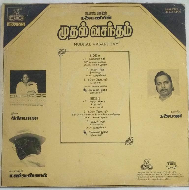 Mudhal Vasantham Tamil Film LP Vinyl Record by Ilayaraaja