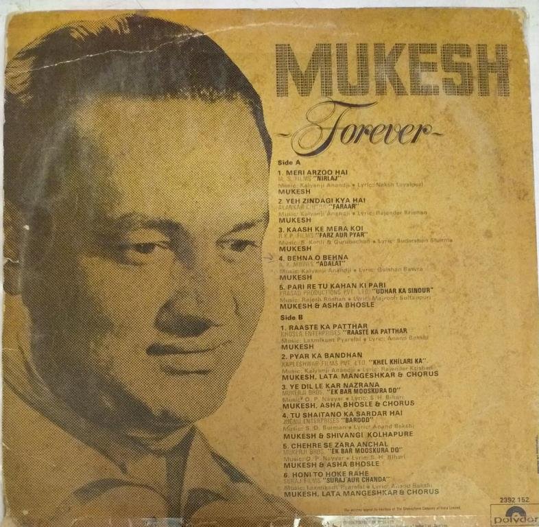 Mukesh Forever Hindi Film hits LP Vinyl Record