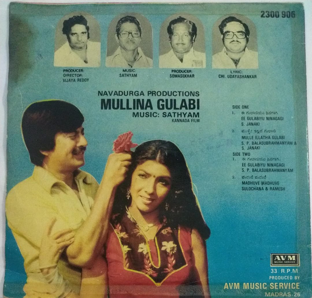 Mullina Gulabi Kannada Film EP Vinyl Record by Sathyam