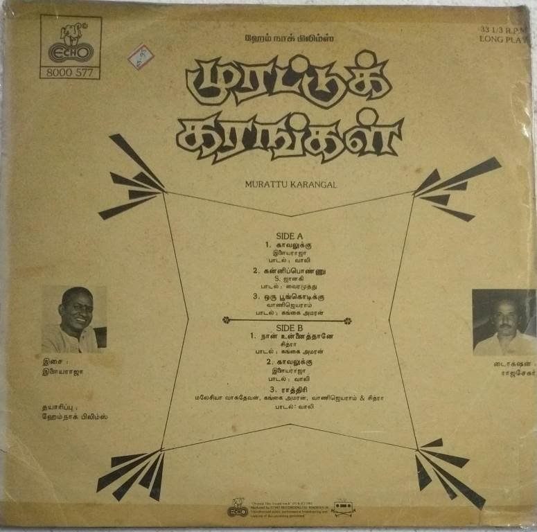 Murattu Karangal Tamil Film LP Vinyl Record by Ilayaraaja