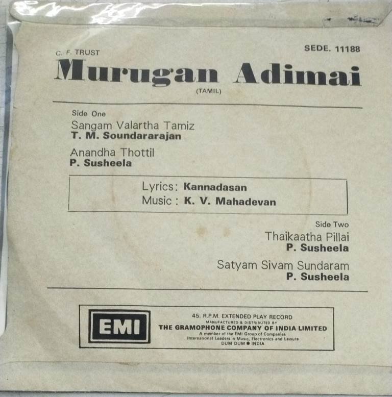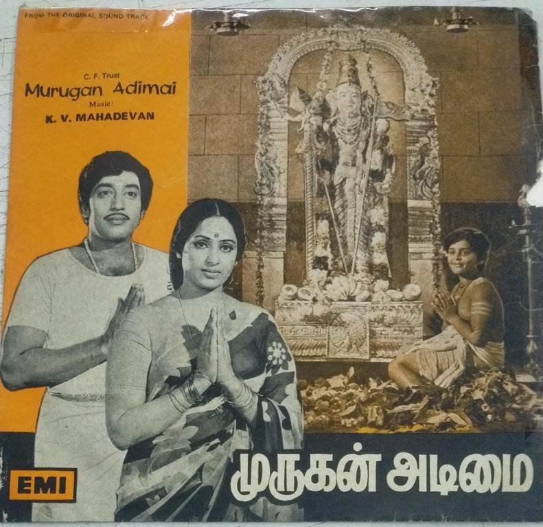 Murugan Adimai Tamil Film EP Vinyl Record by K V Mahadevan