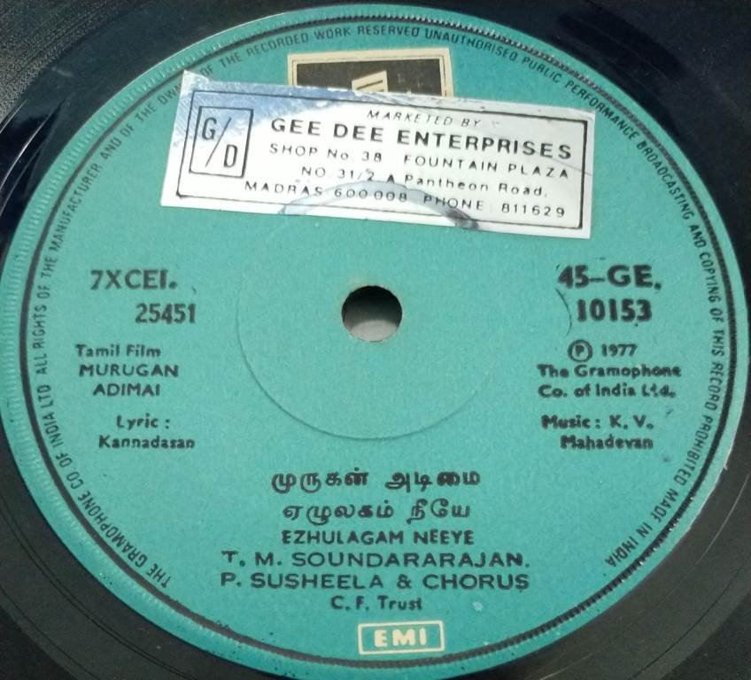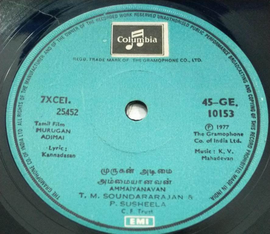 Murugan Adimai Tamil Film EP Vinyl Record by K V Mahadevan