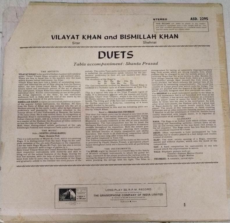 Music from India Series Classical LP Vinyl records by Vilayat Kahan and Bismillah Khan