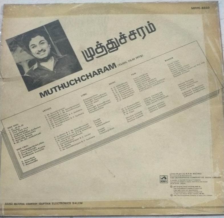 Muthuchcharam Tamil Film Hits LP Vinyl Record