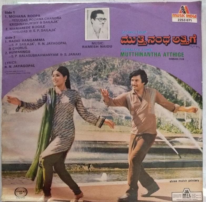 Mutthinantha Atthige Kannada Film EP Vinyl Record by Ramesh Naidu