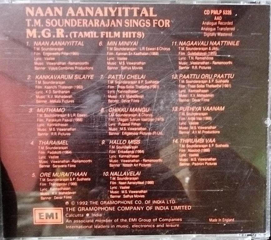 Naan Aanaiyittal TM Sounderarajan sings for MGR Tamil Film Hits Audio CD