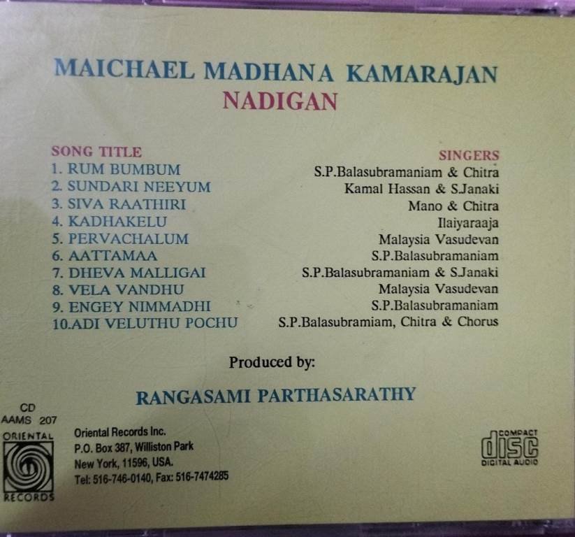 Nadigan – Michael Madhana Kama Rajan Tamil Film songs Audio CD by Ilayaraaja ( USA Edition)