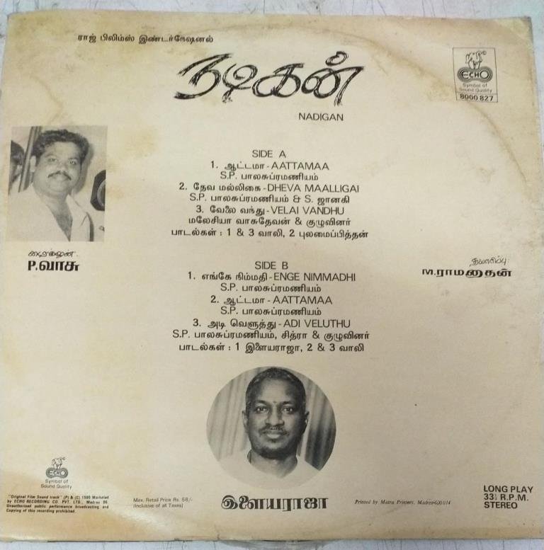 Nadigan Tamil film LP Vinyl Record by Ilayaraja