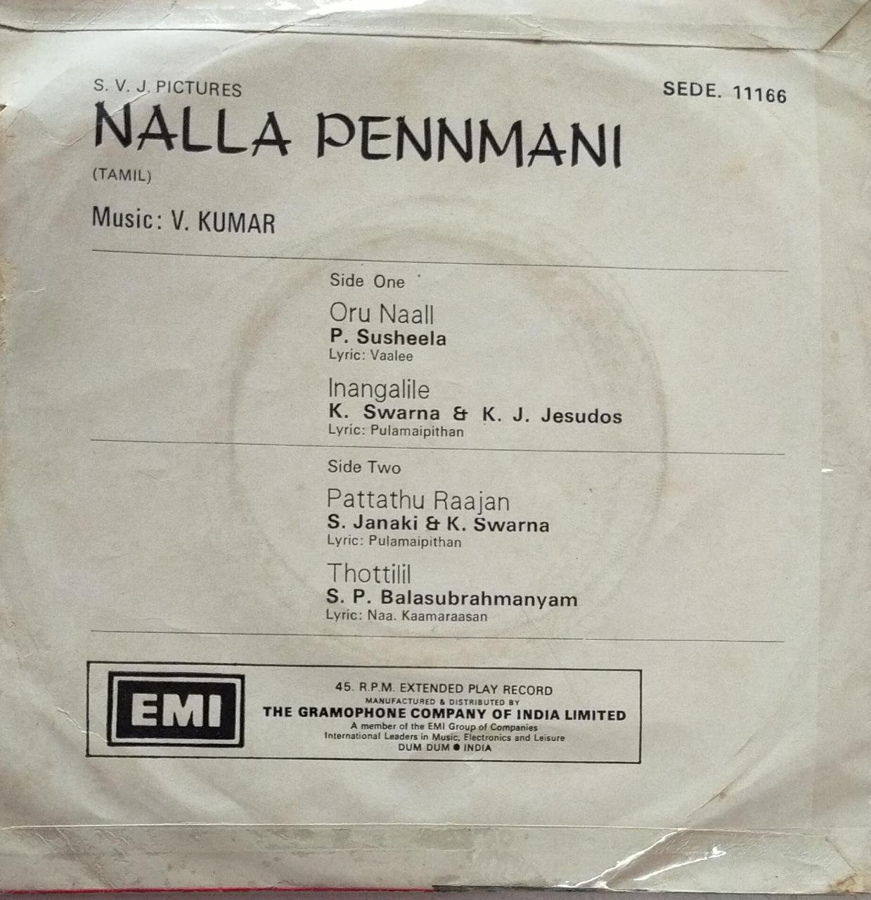 Nalla Penmani Tamil Film EP Vinyl Record by V.Kumar
