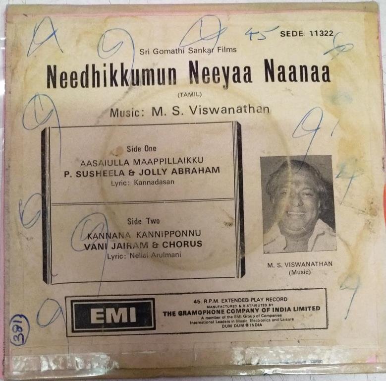 Needhikkumun Neeya Naanaa Tamil Film EP VInyl Record by M S Viswanathan