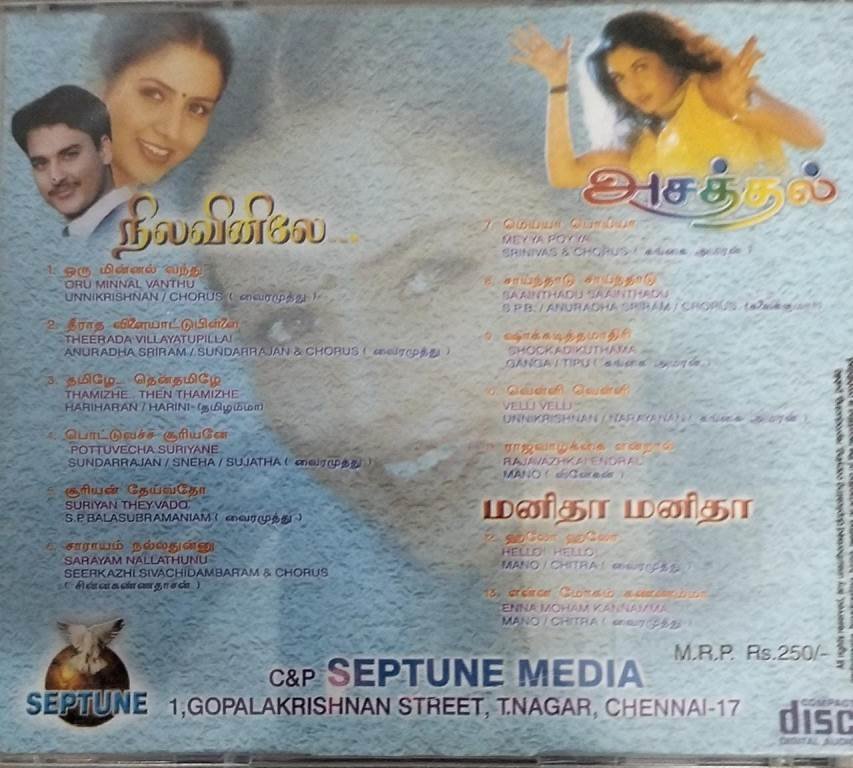 Nilavinile- Asatthal – Manitha Manitha Tamil Film Audio CD by A R Rahman