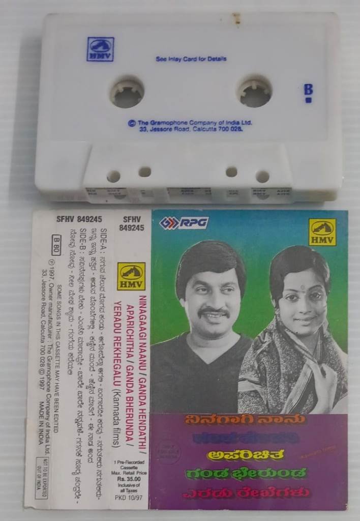 Ninagaagi Naanu- Ganda Hendathi- Aprachithra- Ganda Bheurunda- Yeradu Rekhegalu Kannada Film songs Audio Cassette