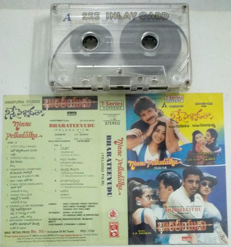 Ninne Pelladatha – Bharateeyudu Telugu Film Audio Cassette by AR Rahman