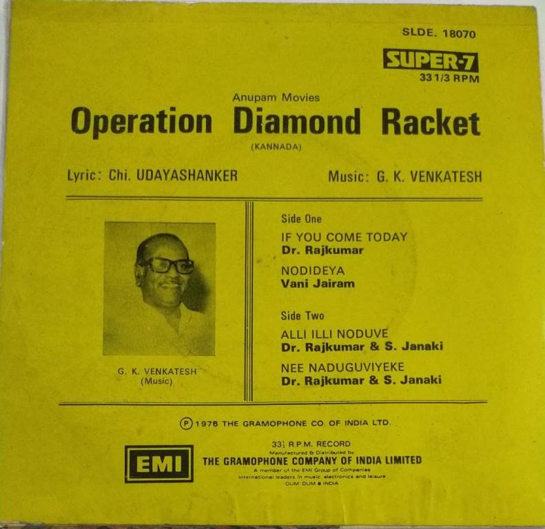 Operation Diamond Racket Kannada Film EP Vinyl Record by GK Venkatesh