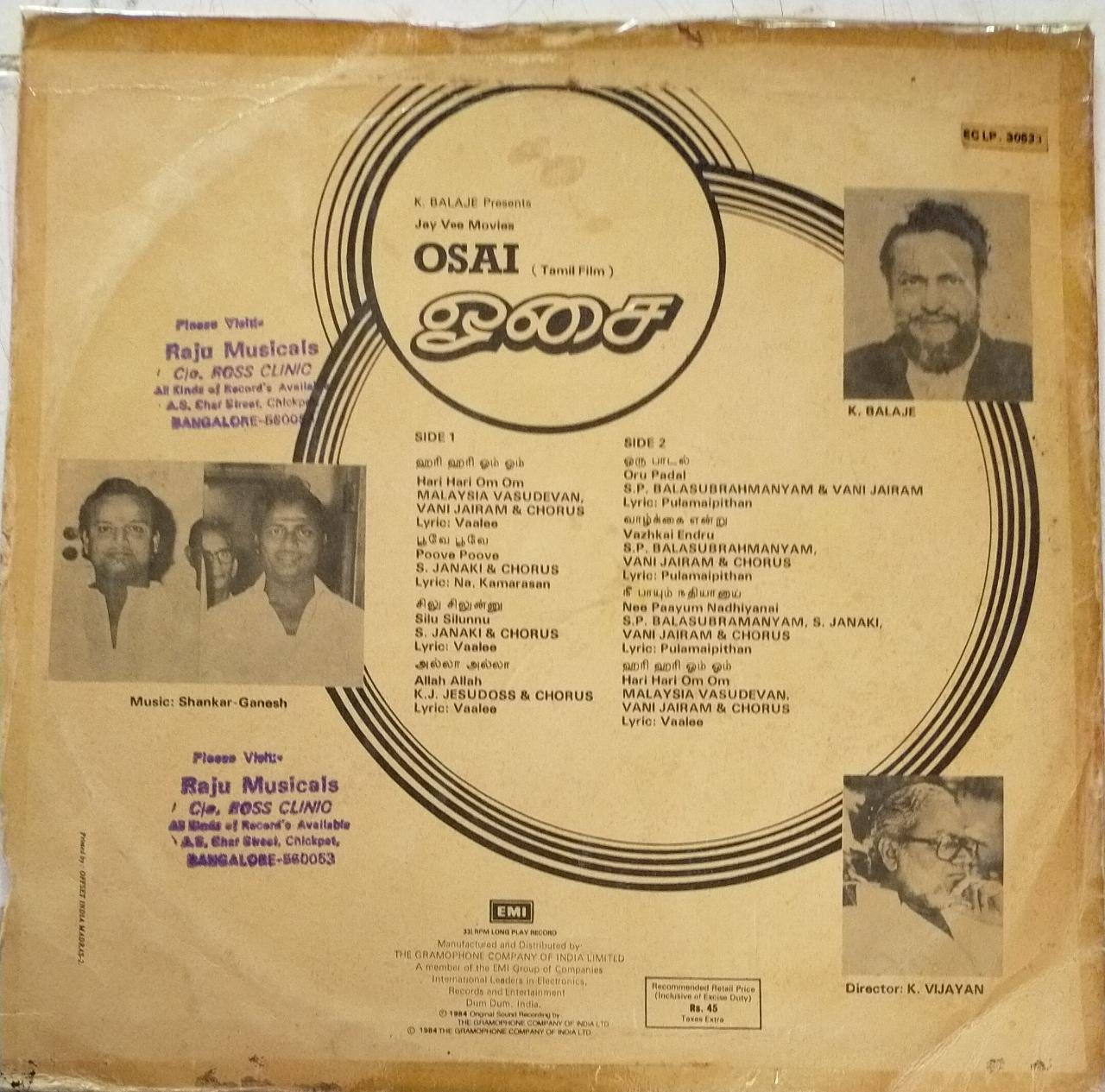 Osai Tamil Film LP Vinyl Record by Shankar Ganesh