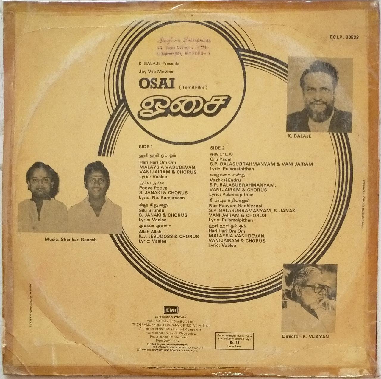 Osai Tamil Film LP Vinyl Record by Shankar Ganesh