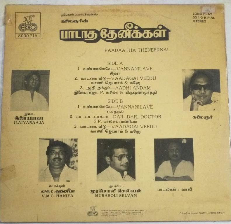 Paadaatha Theneekkal Tamil Film LP Vinyl Record by Ilayaraaja